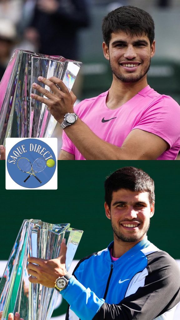 Carlos Alcaraz junto al trofeo en 2023 y 2024. Imagen: @BNPParibas