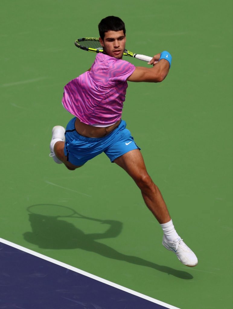 Carlos Alcaraz golpeando de derecha durante el Indian Wells de hace dos temporadas. Imagen: @ATPTour