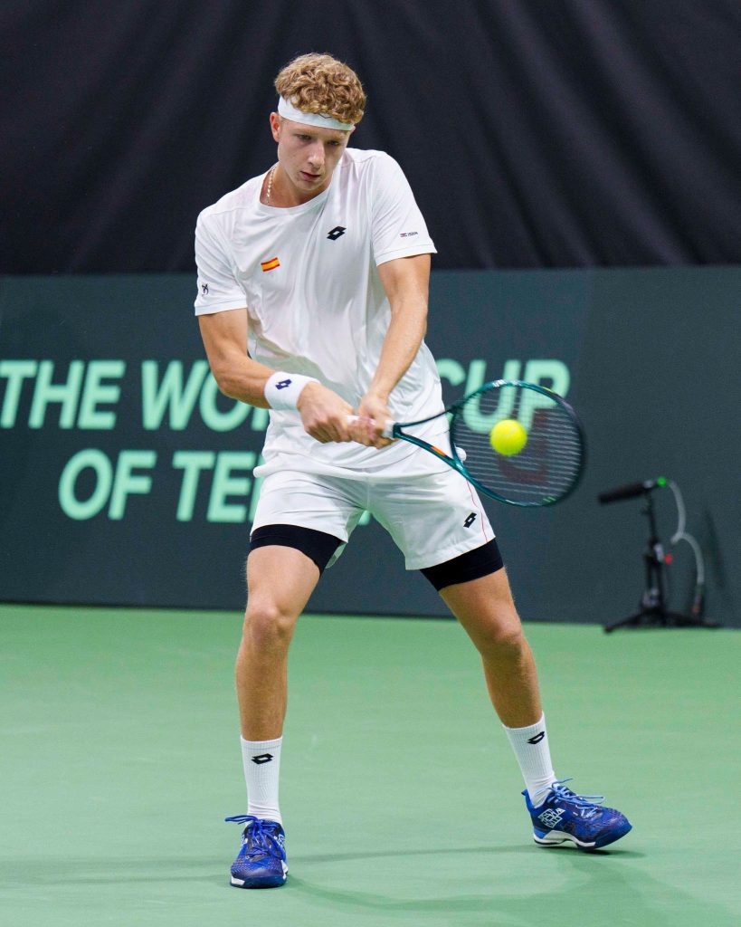 Martín Landaluce golpeando de revés. Imagen: @Rfet