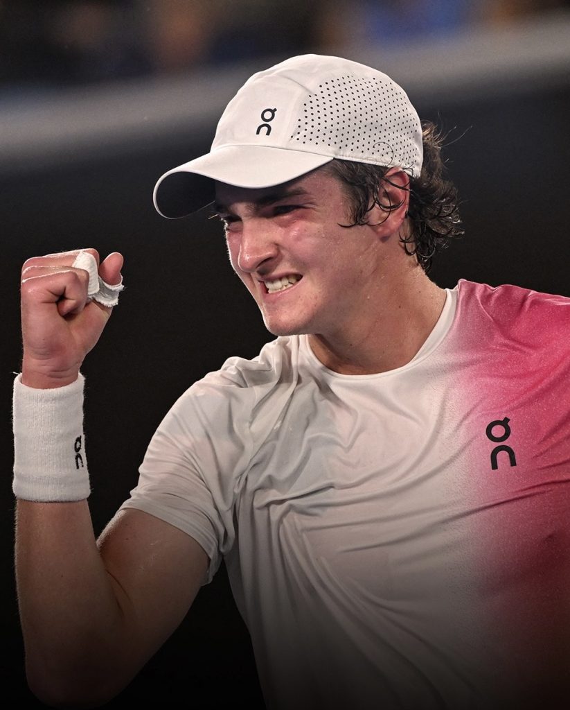Joao Fonseca celebrando un punto en el Australian Open. Imagen @AustralianOpen