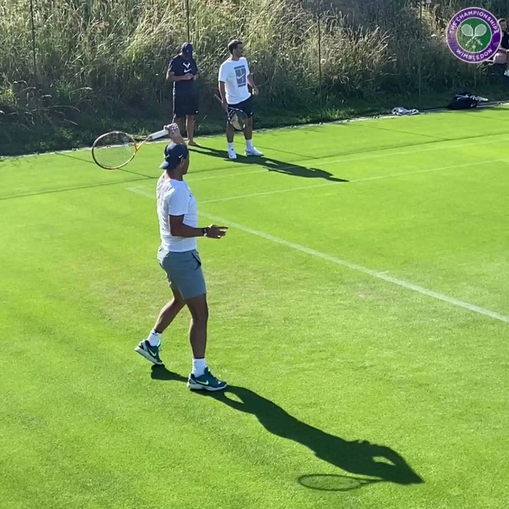 El tenista balear vuelve a Wimbledon tres años después. Nadal, entrenó ayer por la tarde en el All England Club junto a su compañero de circuito Grigor Dimitrov. El número 4 del mundo llega a Londres con siete días de antelación del inicio del cuadro principal con la intención de preparar el tercer Grand Slam de la temporada, Wimbledon 2022. Nadal, también ha entrenado hoy junto al polaco Kamil Majchrzak en la pista 5 de entrenamiento donde ha perdido (6-3 / 4-1).